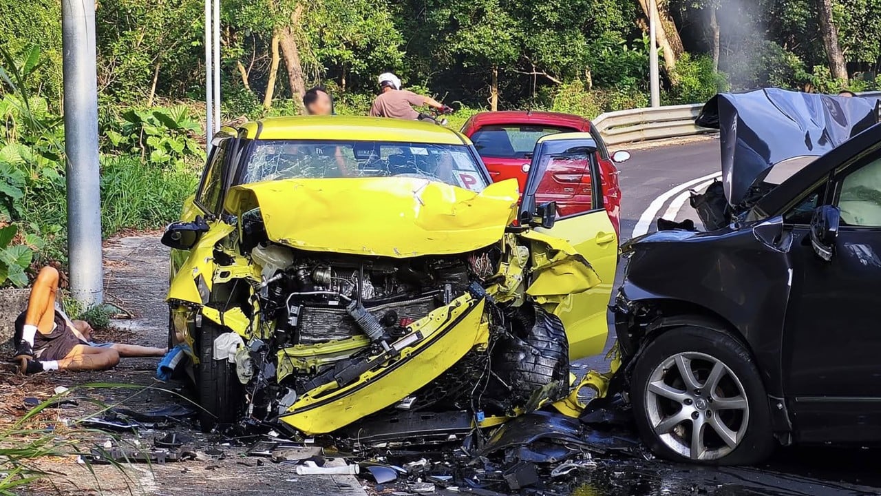 2 men sent to hospital after 3-car collision on Hong Kong country park road