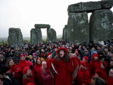 Thousands of people cheered and danced around Stonehenge as the sun rose over the prehistoric stone circle on Sunday, the winter solstice. The crowds,...