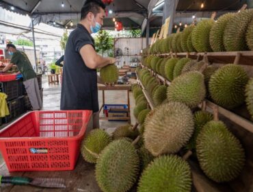 The unmistakable smell of durians from rows of trucks laden with the thorny greenish-yellow fruit signals the arrival of the long-awaited season for lovers...