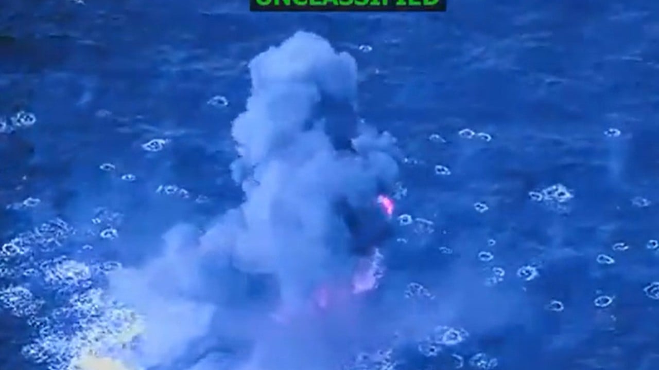 In a nearly 40-second video shared by Hegseth, a vessel can be seen moving through the water before a web of projectiles simultaneously appear to hit the boat and the water, causing the boat to explode on impact.