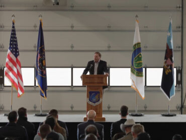 Under Secretary of War for Acquisition and Sustainment Michael Duffey and Secretary of Energy Chris Wright speak during a press conference on Feb. 15...