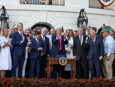 President Donald Trump, joined by Republican lawmakers, signs the One, Big Beautiful Bill Act into law during an Independence Day military family picnic on...