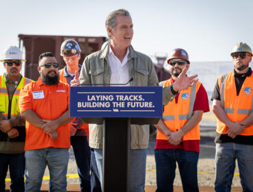 Gov. Gavin Newsom said California is entering the track-installation phase of its high-speed rail project after the state completed a staging facility in Kern...