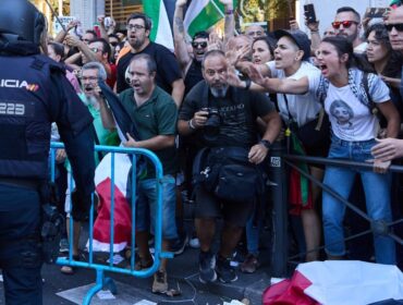 Spanish authorities say more than 100,000 people took part in a pro-Palestinian protest that interrupted the final stage of the Spanish Vuelta and forced...
