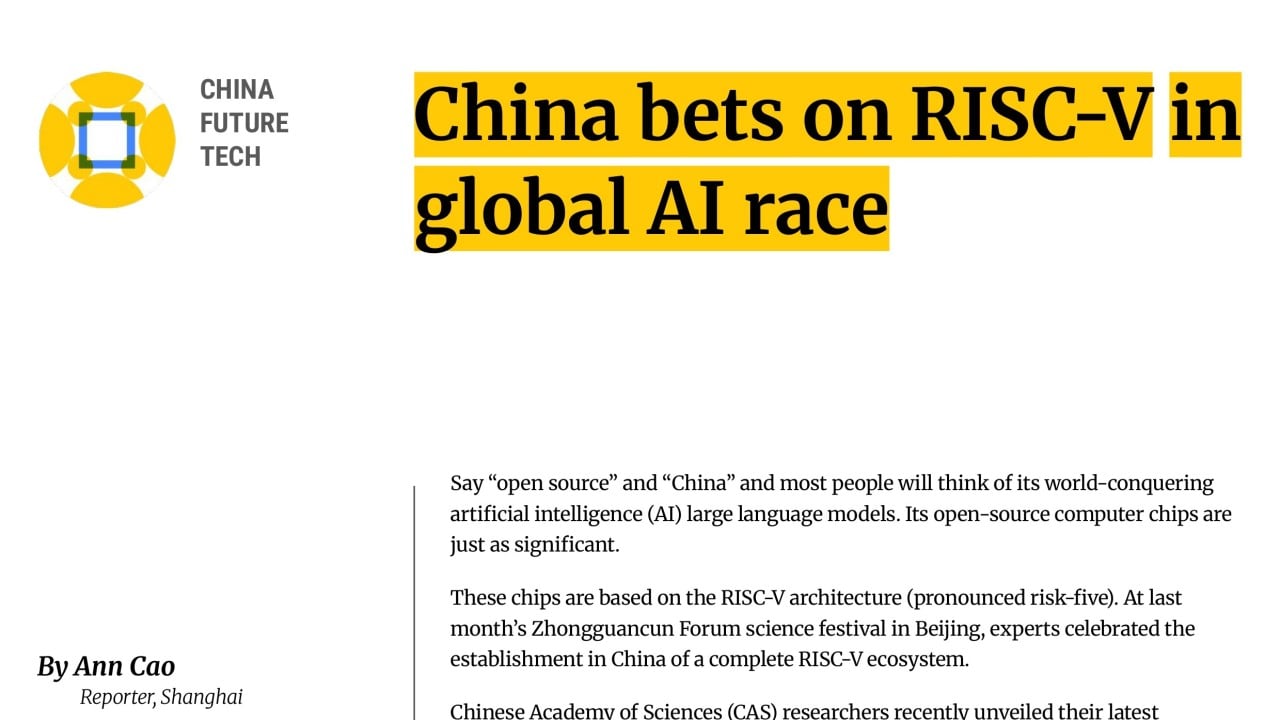 Say “open source” and “China” and most people will think of its world-conquering artificial intelligence (AI) large language models. Its open-source computer chips are just as significant.
