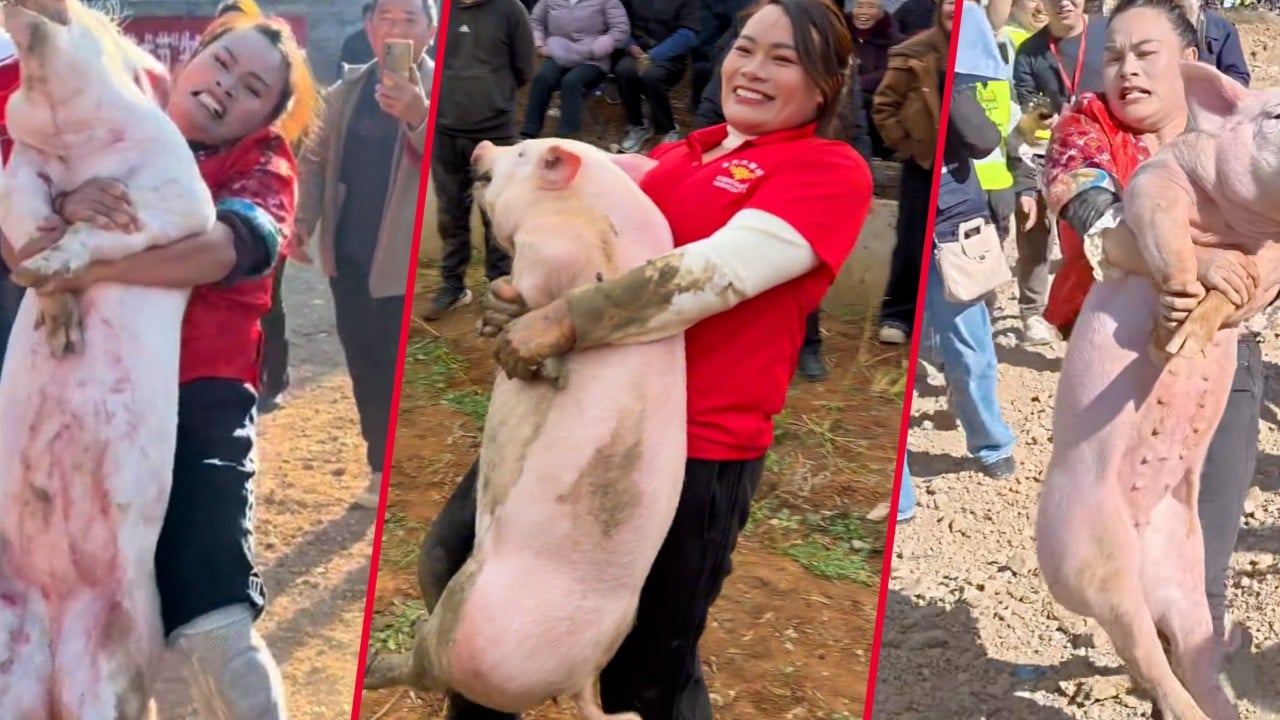 ‘Hold on tight’: China woman wins 22 pig-catching contests, with biggest hog weighing 73kg