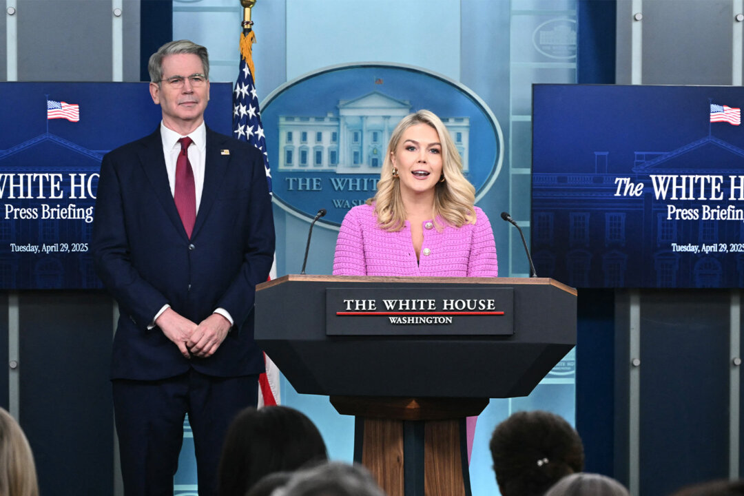 White House press secretary Karoline Leavitt, Treasury Secretary Scott Bessent, and Small Business Administrator Kelly Loeffler hold a briefing at 1 p.m. ET on April 15.