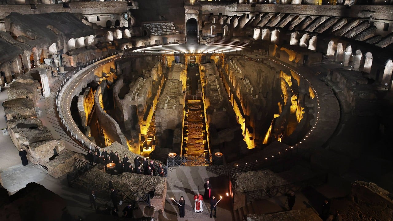 Pope Leo lifted a wooden cross and held it aloft from his waist at the start of the 14 stations of the Way of the Cross at the Colosseum on his first Good Friday as pontiff, marking the first time in decades that a pope has set out to carry the cross to every station.