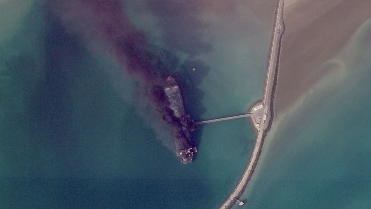 Satellite images are beginning to be released, giving a glimpse into the toll of the Iran war, with ships ablaze in an Iranian port and destroyed buildings at an American base.