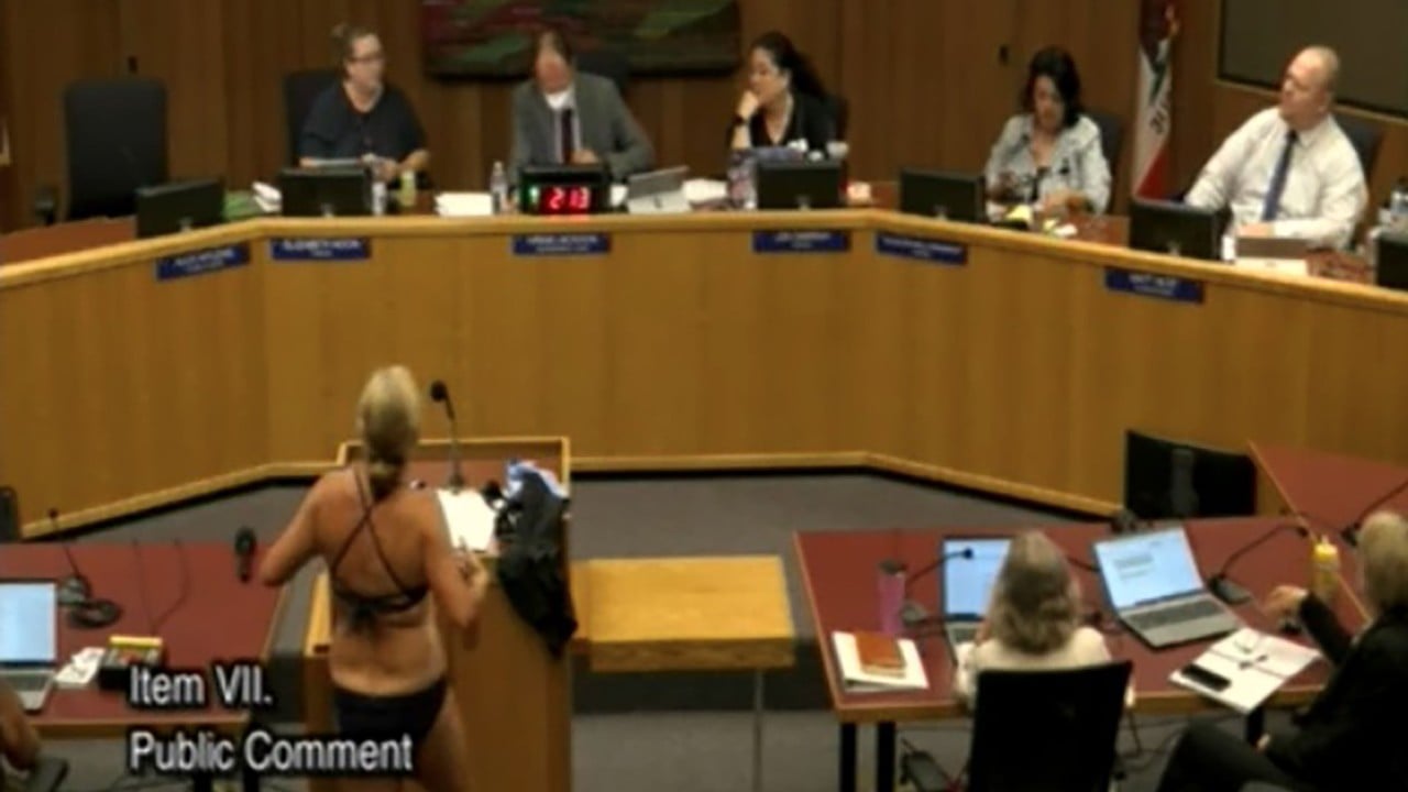 The regular meeting of the Davis Joint Unified School District’s Board of Education was thrown off the rails on September 18 when Beth Bourne took off her clothes during the public comment portion of the meeting.